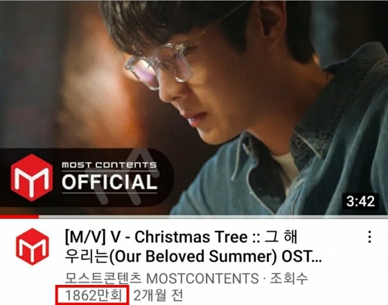 방탄소년단(BTS) 뷔의 'Christmas Tree' 뮤직비디오가 유튜브 조회수 1850뷰를 돌파했다
