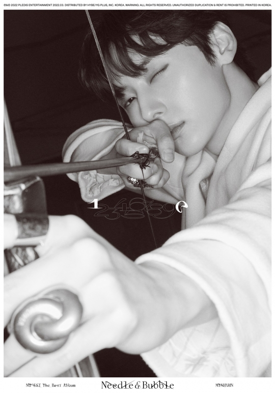 뉴이스트는 오는 15일 베스트 앨범 'Needle & Bubble'(니들 앤 버블)을 발매하는 가운데, 8일 0시 공식 SNS를 통해 민현의 오피셜 포토를 공개했다.
