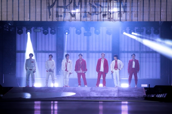 이날 방탄소년단은 'PERMISSION TO DANCE' VCR 뮤직비디오 영상에 이어 이날 오후 7시 10분께 RM 진 뷔 제이홉 슈가 지민 정국 순으로 무대 위에 모습을 드러냈다. 방탄소년단은 인트로가 더해진 'ON'을 이번 공연의 스타트 넘버로 선곡, 화이트 패션으로 꽉찬 웅장한 카리스마를 완성했다. 이어 방탄소년단은 "즐길 준비 돼셨나요?"라고 묻고 '불타오르네' 리믹스 버전과 '쩔어' 무대를 완성했다.