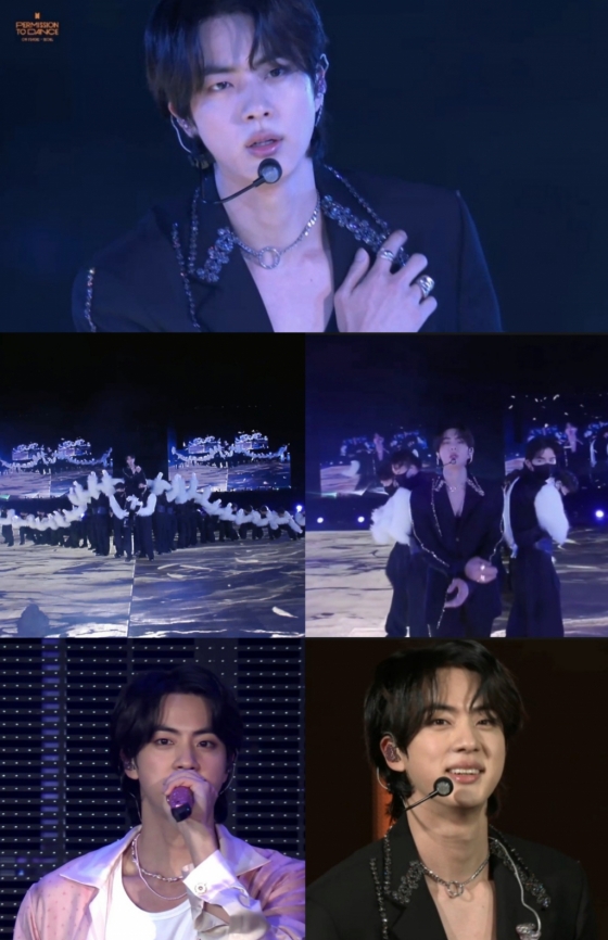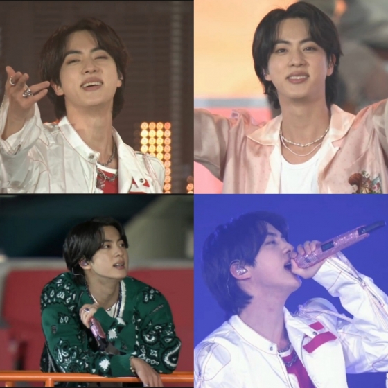 방탄소년단(BTS) 진이 화려한 퍼포먼스와 완벽한 라이브 무대로 팬심을 사로잡았다.