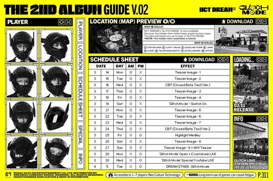 공개된 게임 가이드북 콘셉트의 스케줄 포스터에는 게임 플레이어가 된 멤버들의 미스터리한 모습과 함께 다채로운 콘텐츠 오픈 일정이 담겨 있어 새 앨범에 대한 궁금증을 증폭시켰다.
