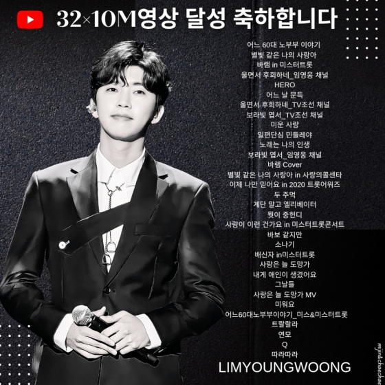 2020년 2월 28일 공개한 '미스터트롯 임영웅 보라빛엽서'도 1000만 뷰 영상 중 하나다.