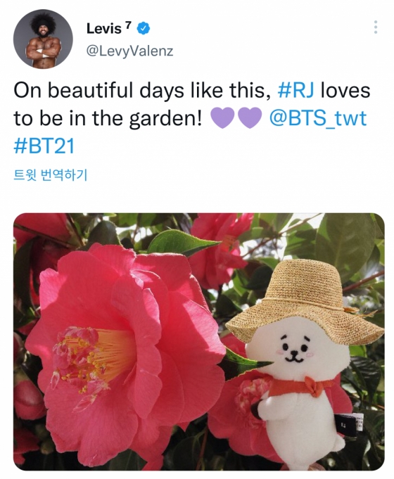 노웨이 호세는 "이렇게 아름다운 날에 RJ는 정원에 있는 것을 좋아합니다"라는 글과 함께 진이 만든 BT21 캐릭터인 알제이가 깜찍한 밀짚모자를 쓴 채 붉은 꽃 옆에 자리한 사진을 직접 찍어 게시하기도 했다.