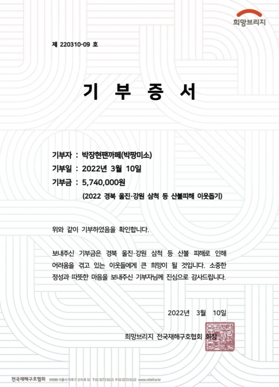 팬클럽 회원들은 "박장현에게 노래로 받았던 위로를 다시 산불 피해 주민들에게 전하며 따뜻한 온기를 나누고 싶었다"고 기부 계기를 밝혔다.