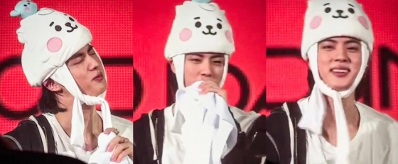 지난 첫 콘서트에서 주문 제작한 메이플 캐릭터 핑크빈 모자에 이어 두 번째 콘서트 날에는 알제이 모자를 쓰고 나와 팬들에게 다시 한번 즐거운 이벤트로 행복한 웃음을 전했고, 이후 비를 잔뜩 맞아 무거워진 모자를 벗고 무대를 퇴장하며 화장이 다 지워진 민낯으로도 화려한 조각 미남의 비주얼을 또 한번 선보여 전 세계 팬들의 심장을 설레게 했다.