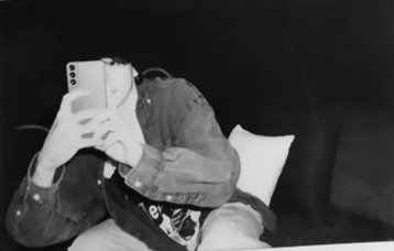 첫 번째 사진에는 정국이 소파에 앉아 휴대전화를 보고 있는 일상적인 모습이 담겨있다.