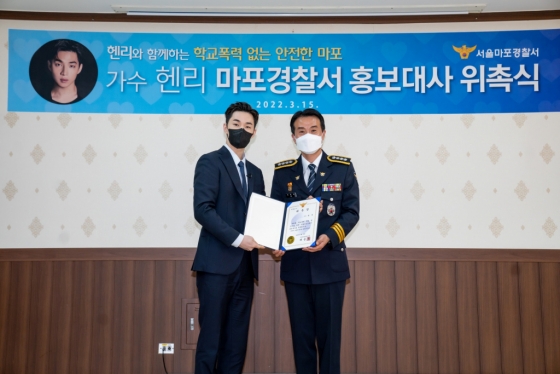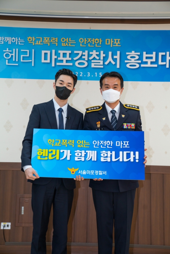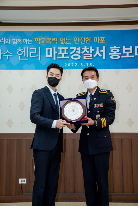 17일 소속사 몬스터엔터테인먼트에 따르면 헨리는 최근 서울 마포경찰서(총경 배용석)에서 학교 폭력 예방 홍보대사 위촉식을 갖고 본격적인 활동을 예고했다.