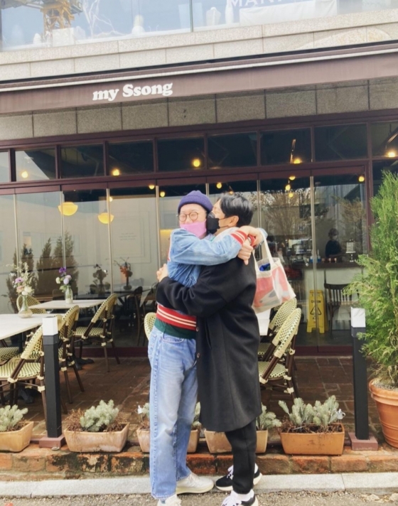 공개된 사진에는 김영철과 장석현이 함께 끌어안고 반기는 모습이 담겨 있다. 또 다른 사진 속 장석현은 김영철의 에세이 '울다가 웃었다'를 들고 김영철과 화기애애한 분위기를 자아내고 있다.