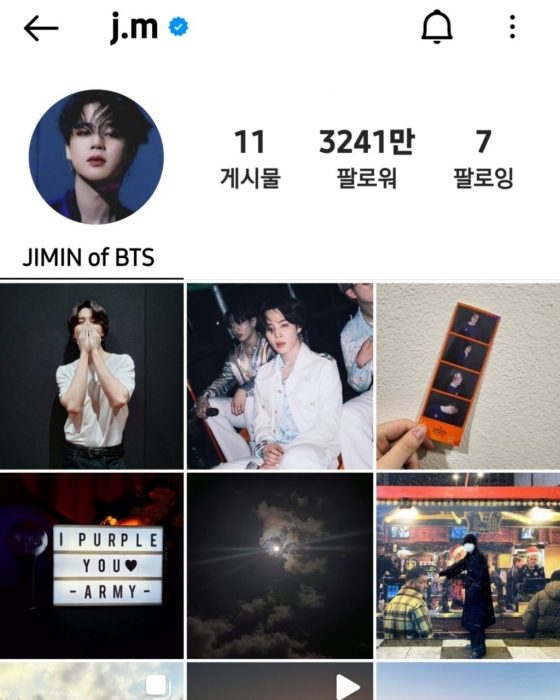 이는 사진 공개 후 20일과 21일 이틀동안 각각 24시간내 가장 많은 팔로워 증가를 보인 K팝 아티스트이자 방탄소년단 멤버로 22일 오전 8시 현재 3241만 팔로워를 돌파하며 막강한 글로벌 잇보이 파급력을 입증했다.
