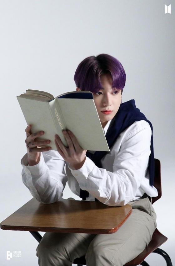 더불어 정국은 화이트 셔츠에 네이비 니트를 걸친 채 면바지를 입고 클래식한 무드와 눈빛으로 손에 책을 들고 지적인 매력도 발산했다.
