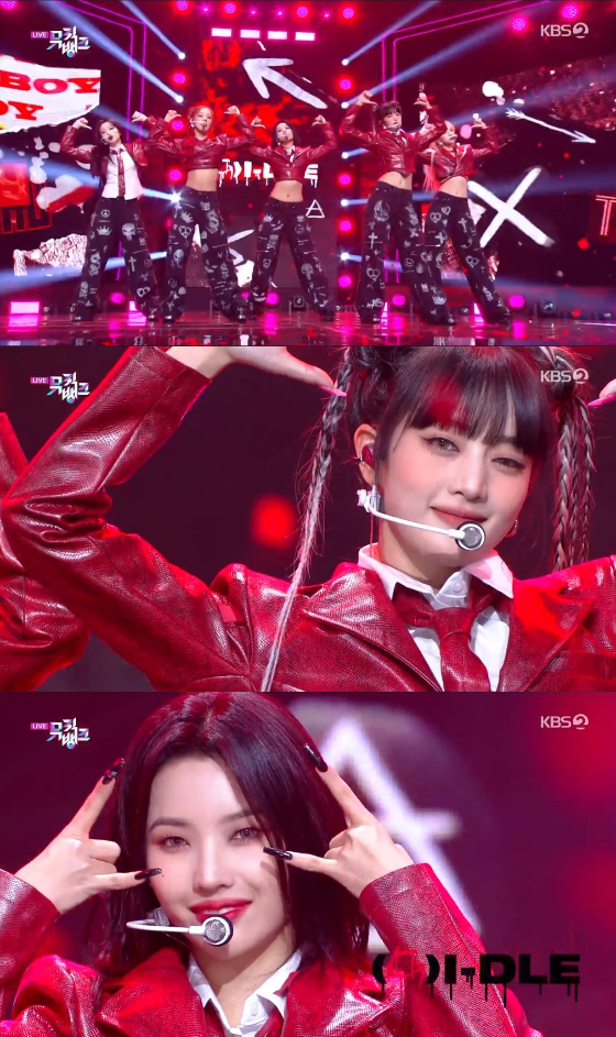 '뮤직뱅크'에서 걸 그룹 (여자)아이들이 신곡 'TOMBOY'로 무대를 장악했다.