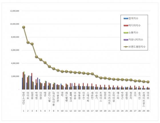 한국기업평판연구소는 2022년 2월 26일부터 2022년 3월 26일까지의 가수 브랜드 빅데이터 125,354,431개를 분석하여 소비자들의 브랜드 참여, 미디어, 소통, 커뮤니티 분석을 하였다. 지난 2월 가수 브랜드 빅데이터 119,387,722개보다 5.00% 증가했다.
