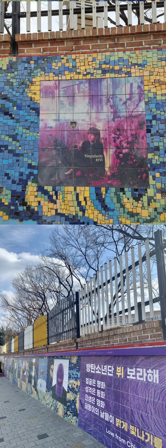 벽화는 뷔가 좋아하는 화가 고흐의 '별이 빛나는 밤'을 모티브로 뷔의 음악작업 이미지와 팬들의 마음을 담은 글들을 새겨 파노라마 타일벽화로 조성되었다. 벽화가 지역명소로 자리잡자 대구 서구청은 얼마 전 시티투어 연계를 염두에 두고 총 58m로 추가 조성 계획을 발표해, 뷔가 일으킨 지역경제 활성 효과를 실감하게 했다.