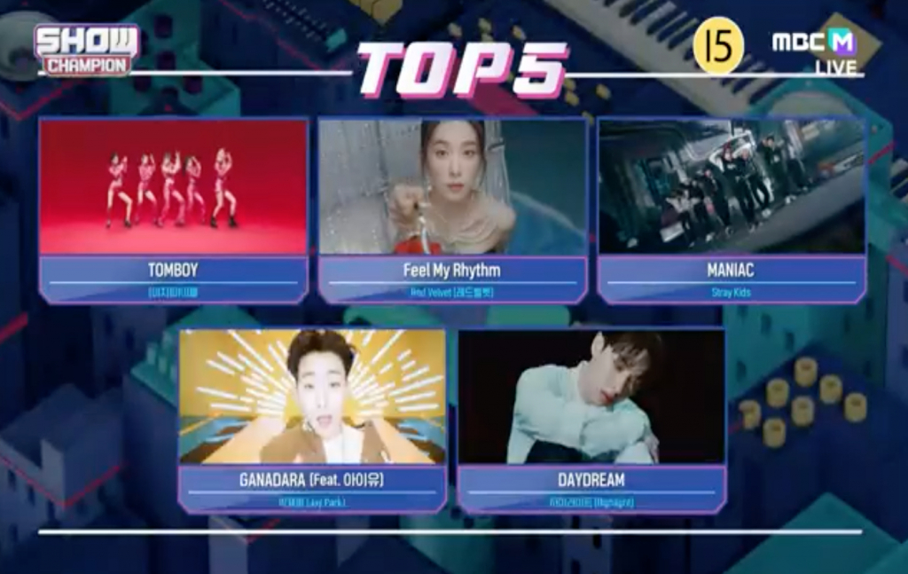 이날 '쇼챔피언' 챔피언송 후보로는 스트레이키즈 '매니악'과 함께 박재범 '가나다라', (여자)아이들 '톰보이', 레드벨벳 'Feel My Rhythm', 하이라이트 '데이드림'이 올랐다.