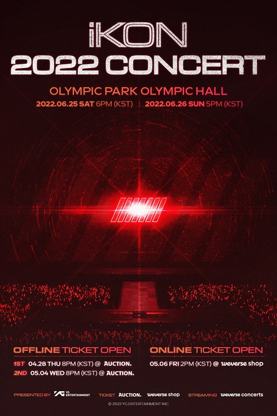아이콘의 이번 콘서트는 첫날(6월 25일)은 오프라인만, 둘째날(6월 26일)은 온·오프라인으로 동시 진행된다. 오프라인 관람권은 5월 4일부터 옥션 티켓, 온라인 관람권은 5월 6일부터 위버스샵에서 구매할 수 있다.