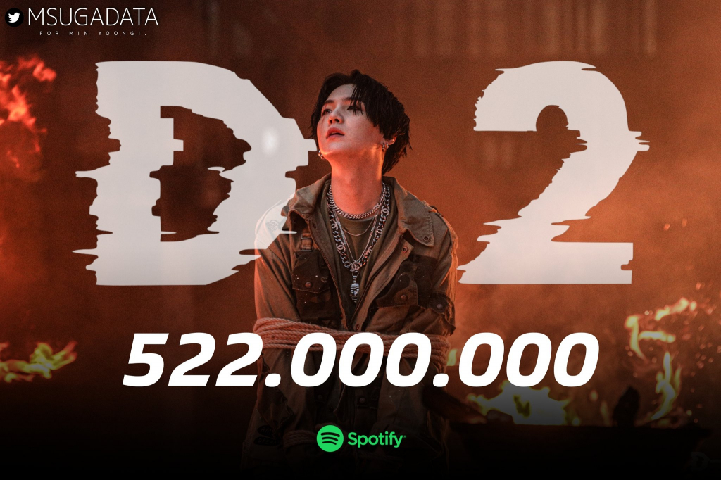 슈가가 2020년 5월 어거스트 디(Agust D)로 발매한 두 번째 믹스테이프 'D-2'는 4월 9일 5억 2200만 스트리밍을 넘어섰다.
