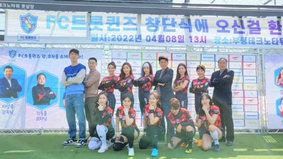 'FC트롯퀸즈'는 지난 8일 인천 부평구 부평테크노타워JM풋살장에서 창단식을 갖고 트로트가수 여자축구 팀 탄생을 알렸다.