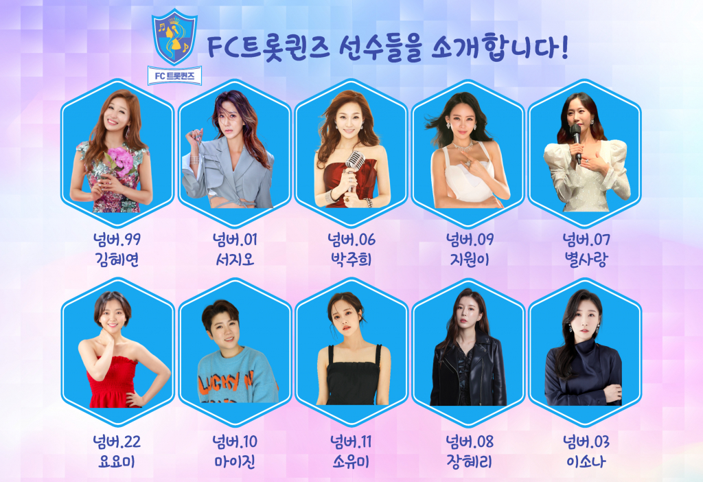 이날 창단식에는 김혜연, 서지오, 박주희, 지원이, 별사랑, 요요미, 마이진, 소유미, 장혜리, 이소나 등 'FC트롯퀸즈' 선수로 뛸 가수들이 한 데 모였다.