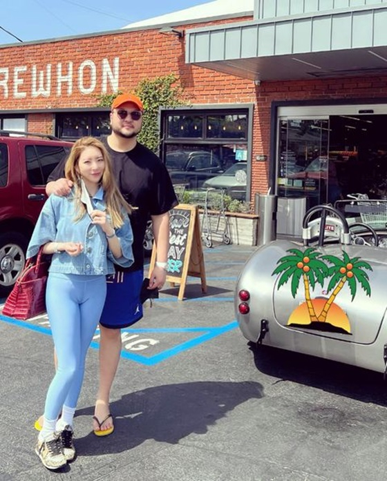 또 다른 사진 속에는 LA 거리에서 포즈를 취하는 김애리의 모습이 담겨있다. 편안한 차림의 김태우와 레깅스와 청자켓으로 멋을 낸 김애리의 상반된 패션이 돋보인다.