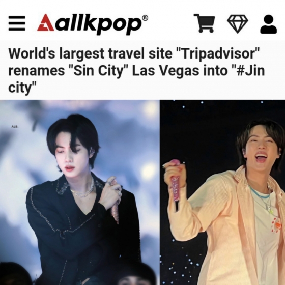 미국 연예 매체인 올케이팝(Allkpop)은 "세계 최대 여행 사이트 트립어드바이저가 'Sin City' 라스베가스를 '#Jin City'로 개명하다"라는 타이틀의 기사를 게재했다.