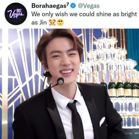 이에 라스베이거스 공식 관광계정은 "라스베이거스가 진만큼 밝게 빛나길 바란다"는 글로 진과 함께 행복한 축제를 만끽할 열정적 기대감을 나타내 눈길을 끌었다.