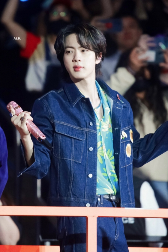 진은 손가락 부상으로 깁스를 한 채로 강렬하고 열정적인 퍼포먼스를 선보이며, 압도적 존재감과 환상적 무대 장악력으로 눈길을 모았다.