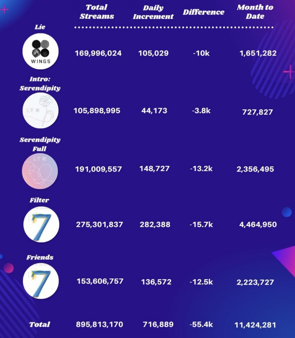 지민의 솔로곡 '라이'는 4월 15일 기준 세계 최대 음원 플랫폼 스포티파이에서 1억 7000만 스트리밍을 돌파했다.