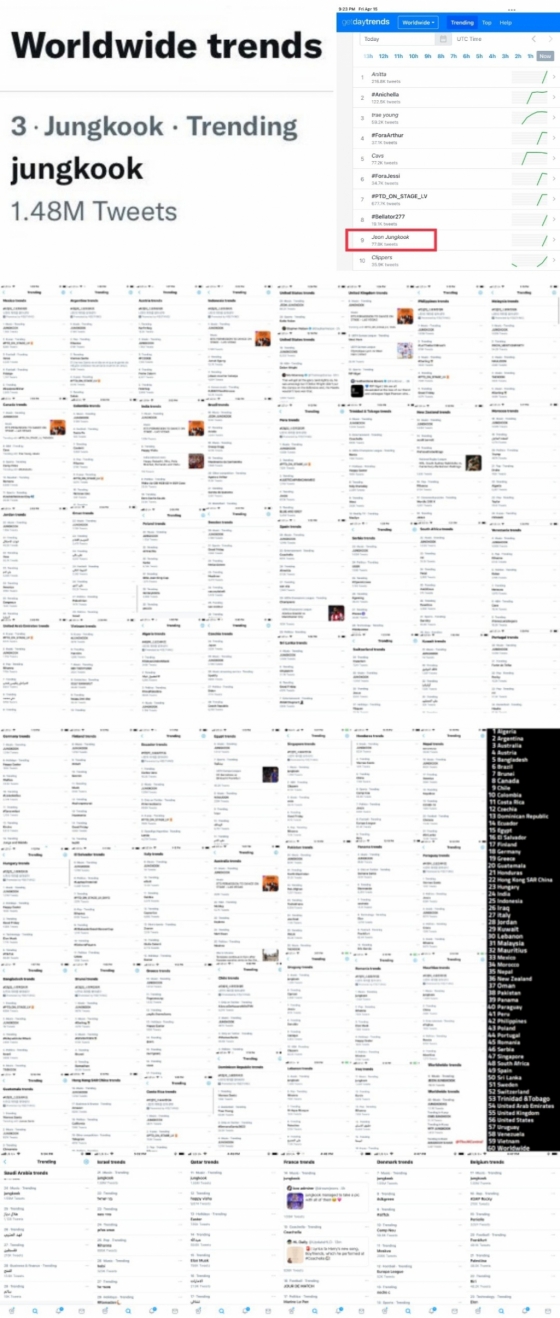 정국은 트위터도 휩쓸었다. 'jungkook'이 월드와이드(전세계) 실시간 트렌드 3위, 'Jeon jungkook'이 9위에 올랐고 'Jungkook', 'Jungkooks' 등이 65개 국가 실시간 트렌드에 랭크되며 세계 각국에서 초특급 인기를 나타냈다. 언급량 역시 약 150만에 달했다.