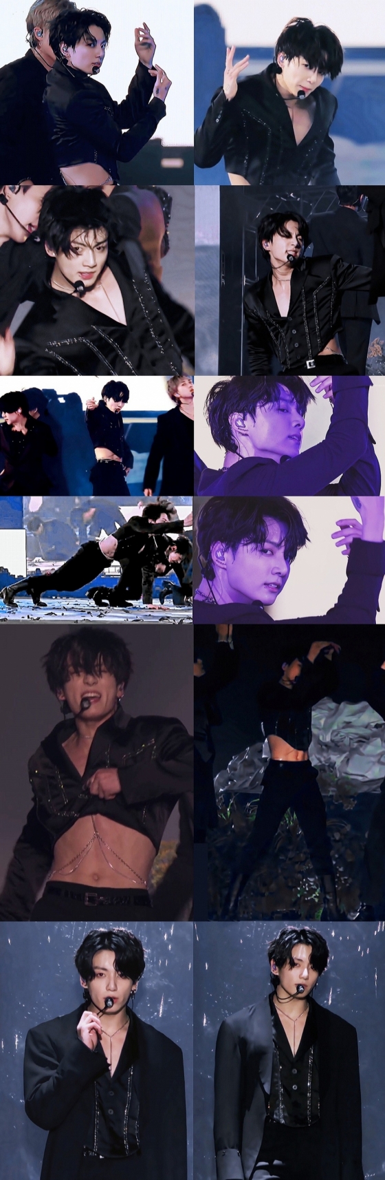 또 정국은 한치 오차 없는 칼각, 칼박의 군무부터 바디롤이 살아있는 부드러운 안무까지 비교불가한 퍼포먼스 끝판을 보여주며 '무대 제왕'의 압도적인 존재감을 과시했다.