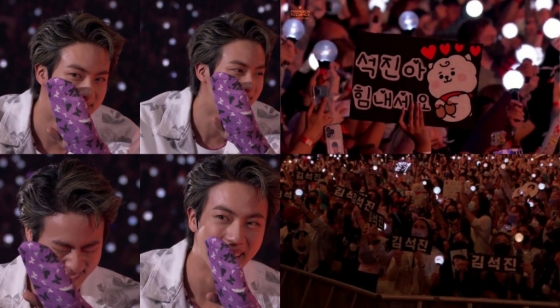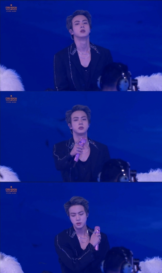 이어지는 '블루 앤 그레이 (Blue & Grey)', '블랙 스완 (Black Swan)', '피 땀 눈물', '페이크 러브 (FAKE LOVE)' 무대는 진의 뛰어난 표정연기와 극찬 받았던 서사가 가득한 청량한 크리스탈 보이스가 함께 담기는 시간이었다.