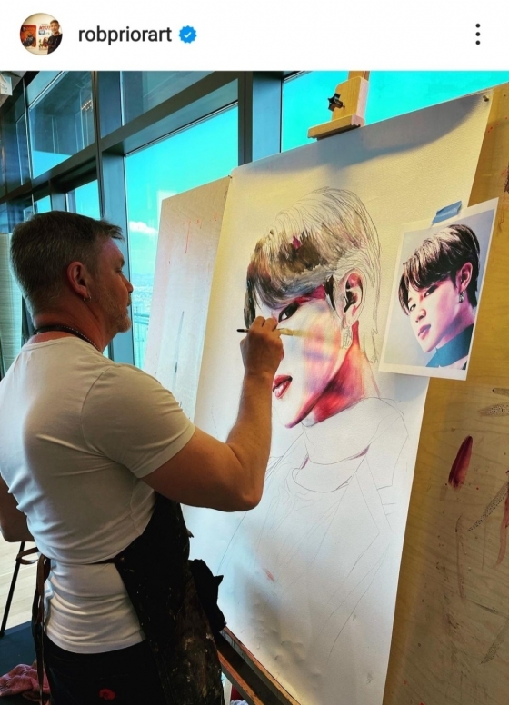 마블·DC 만화의 대가이자 영화예술가 롭 프라이머(Rob Prior)는 최근 자신의 SNS를 통해 지민을 모델로한 작품을 공개했다. 이 작품은 방탄소년단의 콘서트가 진행되고 있는 미국 라스베이거스에서 전시되어 더욱 관심을 모았다.