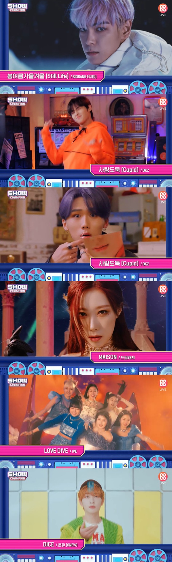 20 오후 방송된 MBC M '쇼! 챔피언'(이하 쇼챔)에서는 빅뱅의 '봄여름가을겨울', DKZ '사랑도둑', 아이브 'LOVE DIVE', 드림캐쳐 'MAISON', 온유 'DICE'가 1위 후보에 올랐다.