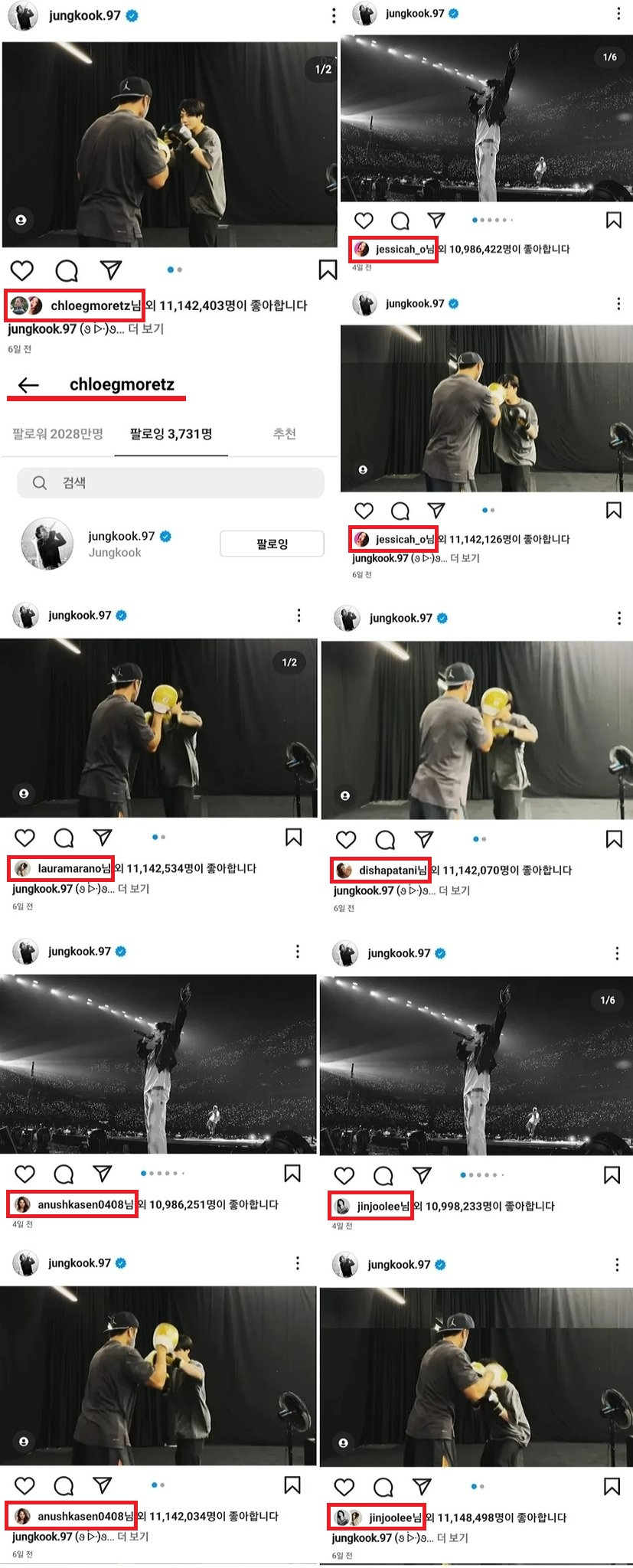 앞서 SBS 모비딕에 출연해 정국을 '연예인으로서 이상형', '듀엣곡을 부르고 싶은 사람 '으로 꼽았던 가수 제시(Jessi)도 해당 복싱 영상에 '좋아요'를 눌렀다.