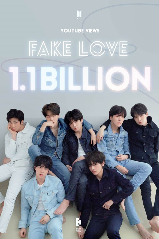 그룹 방탄소년단(BTS)의 'FAKE LOVE' 뮤직비디오가 11억뷰를 돌파했다.