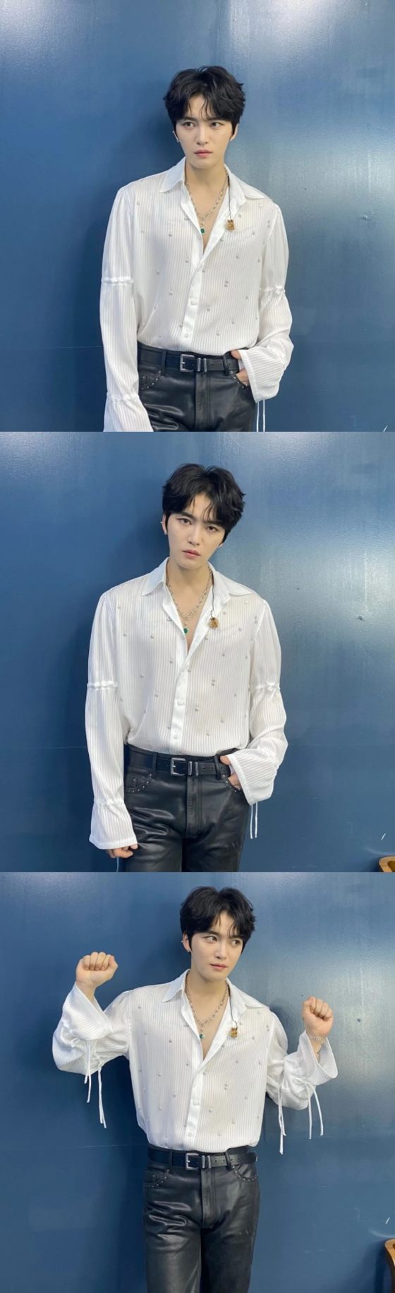 공개된 사진 속 김재중은 흰색 셔츠에 검정 가죽 바지를 입고 포즈를 취하고 있다. 새침한 표정을 짓다가도, 주먹을 쥔 채 두 팔을 들어 올린 김재중의 개구진 모습이 눈길을 끈다.