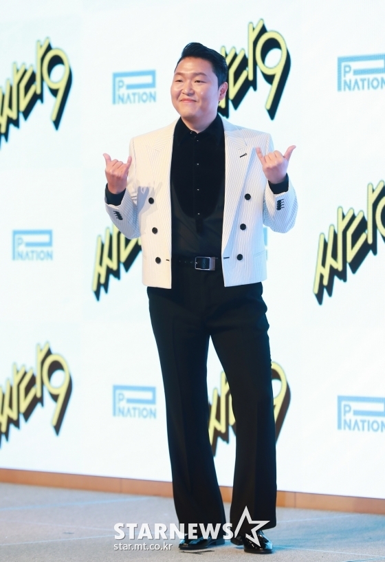 가수 싸이(PSY)가 29일 오후 서울 영등포구 페어몬트 앰배서더 서울에서 진행된 정규 9집 '싸다9' 발매기념 청음회에 참석해 포즈를 취하고 있다. /사진=이동훈 기자