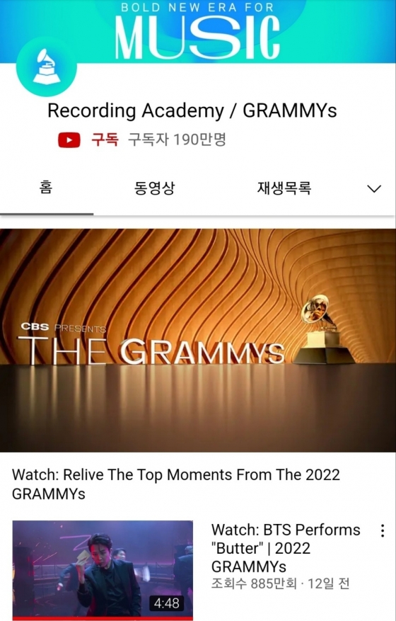 또한 방탄소년단 '버터' 무대를 업로드하며 역시 지민을 대표 섬네일로 장식해 올해 64회 그래미어워드에서만 벌써 두번째 방탄소년단을 대표한 단독 섬네일의 주인공이 되었다.