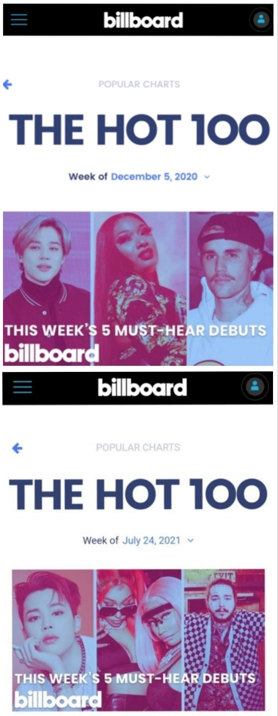 2020년 방탄소년단이 빌보드 핫100 1위를 차지할 당시 방탄소년단을 대표해 포스트 말론, 니키 미나즈와 함께 대표 섬네일을 차지했으며, 2021년에도 저스틴 비버등과 함께 방탄소년단 핫100 1위 섬네일을 대표했다.