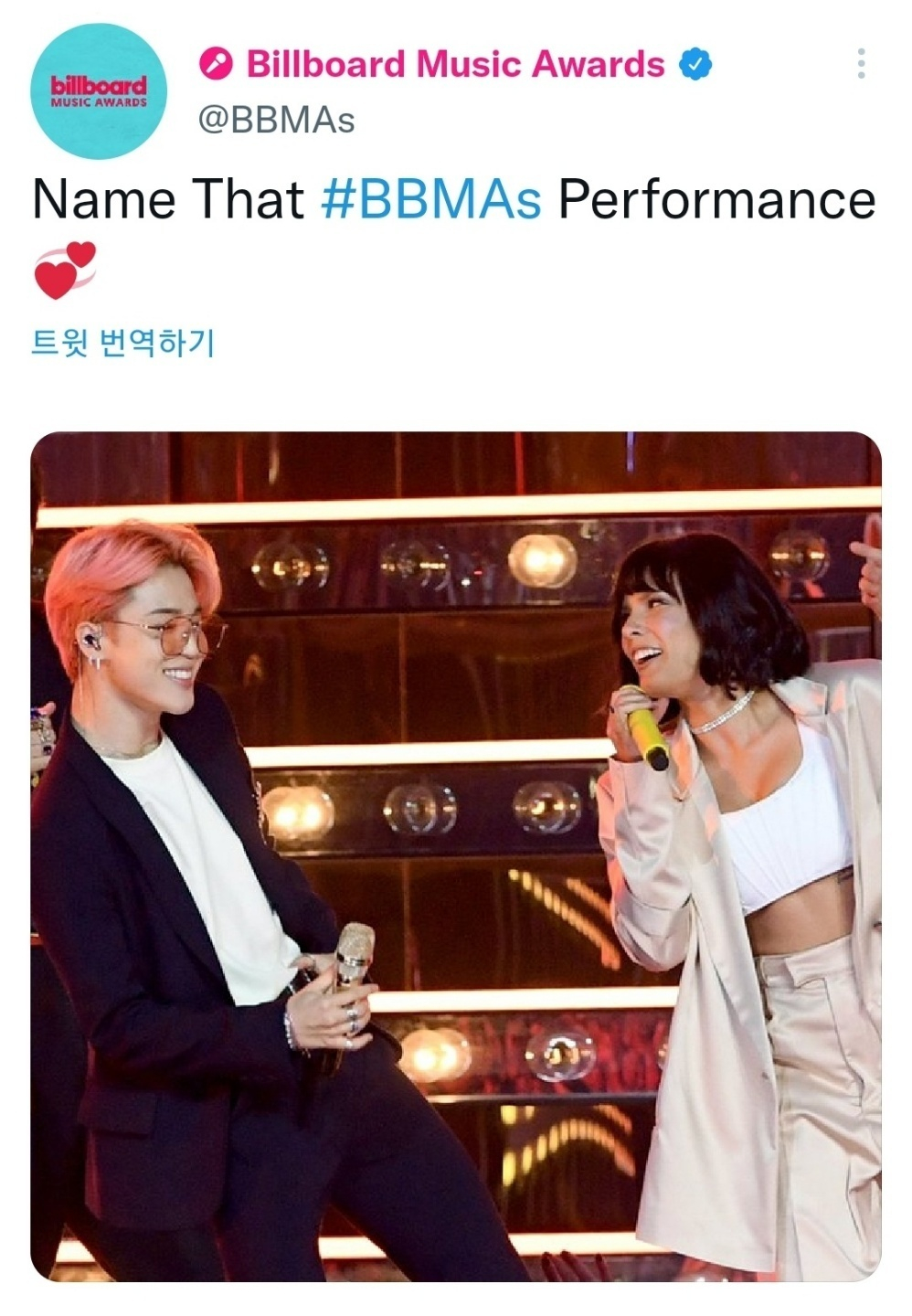 오는 5월24일 '빌보드 뮤직 어워드'(Billboard Music Awards 2022, BBMA) 개최를 앞두고 지난 시상식을 대표하는 상징적 퍼포먼스를 소개하며 방탄소년단을 대표해 지민과 할시의 무대 사진을 게재해 SNS를 후끈 달아오르게 했다.