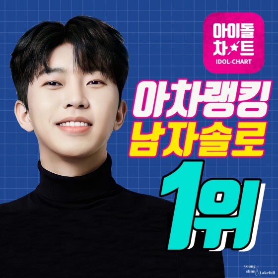 가수 임영웅이 아이돌차트 아차랭킹 남자솔로 1위에 오르며 '넘버원' 인기를 빛냈다.