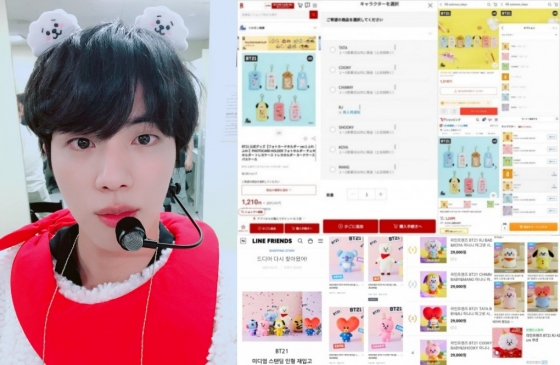 최근 네이버 라인프렌즈(LINE FRIENDS)에서 출시 된 'BT21 알제이 minini 플랫 쿠션'과 '스트리트무드 백참 인형', '스트리트무드 스탠딩 인형'도 빠르게 품절됐다.