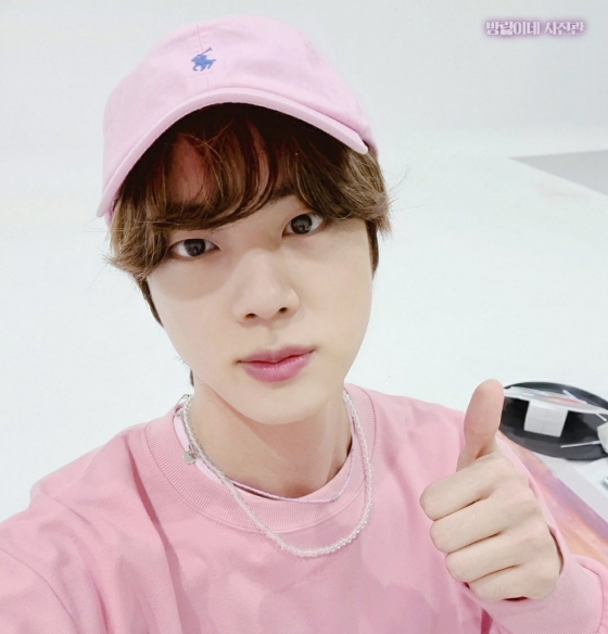 사진 속 진은 지난해 공식 유튜브 채널과 팬 커뮤니티 플랫폼 위버스(Weverse)를 통해 공개된 2021 BTS FESTA '소우주'의 콘텐츠 중 '방림이네 사진관'에서의 모습이다.