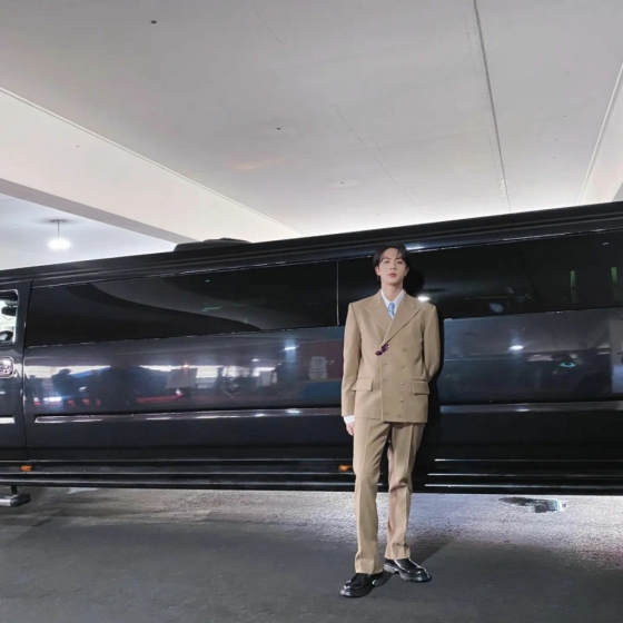 딸기우윳빛 모자와 상하의를 착용한 진은 티 없이 맑은 피부와 크고 반짝이는 눈망울, 오뚝하며 아름다운 콧대와 볼륨감 있는 입술, 완벽한 각도의 입매 등 뚜렷한 이목구비를 가진 청순 미남의 정석으로 단번에 보는 이들의 마음을 사로잡았다.