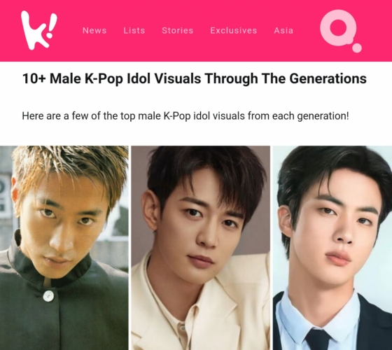 북미 연예 매체 코리아부는 최근 '세대를 아우르는 K팝 남성 아이돌 비주얼'(10+ Male K팝 Idol Visuals Through The Generations) 기사를 통해 '각 세대 최고의 비주얼을 가진 남성 K팝 아이돌'을 선정했다.