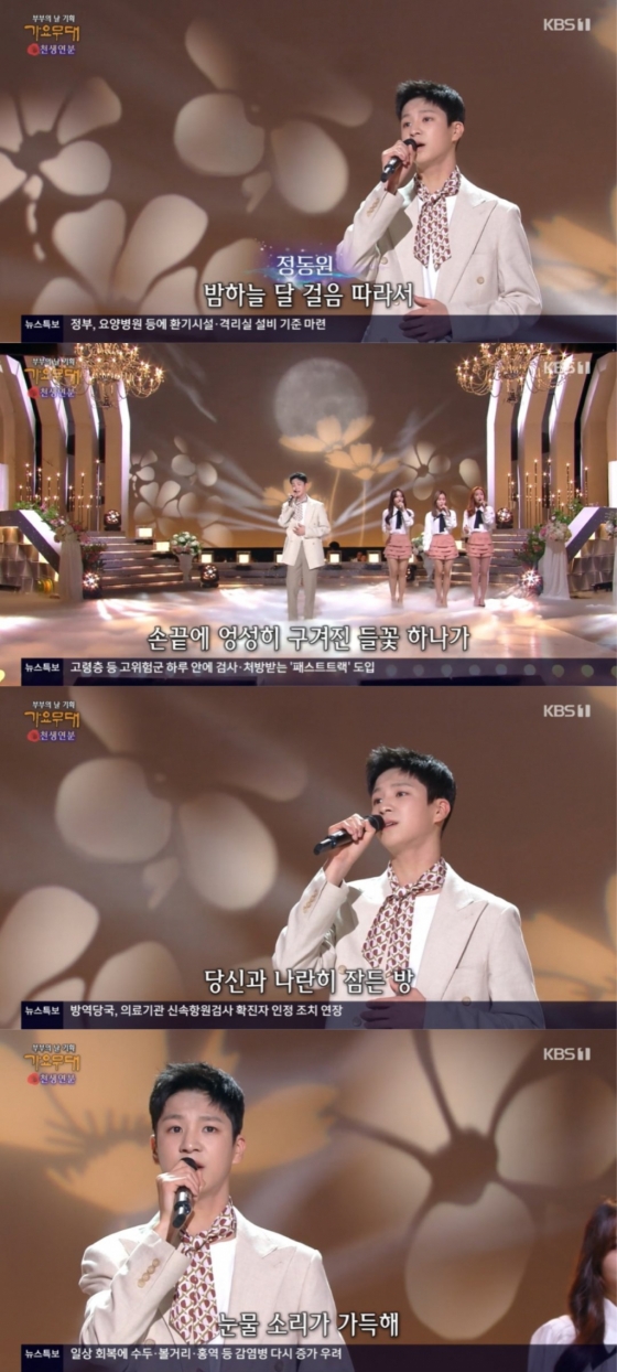 지난 16일 저녁 방송된 KBS 1TV '가요무대'에 가수 정동원이 출연했다. 이날 정동원은 주병선의 '들꽃'을 선곡해 자신만의 감성으로 재해석된 무대를 선사했다.