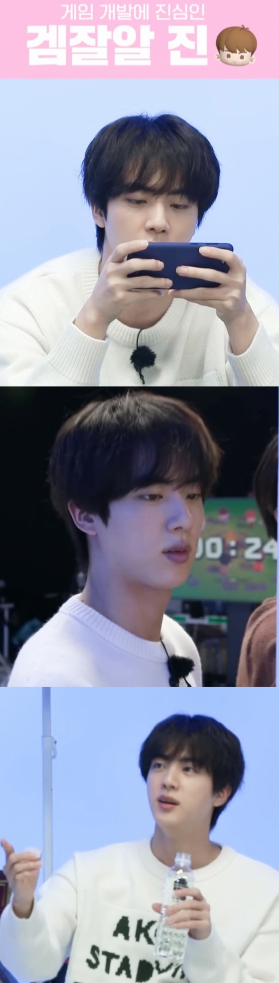 진은 모바일 게임을 하면서 즐겁게 "쩔어 ~"를 외치는 등 개구쟁이 같은 귀여움으로 팬들을 미소 짓게 했다.