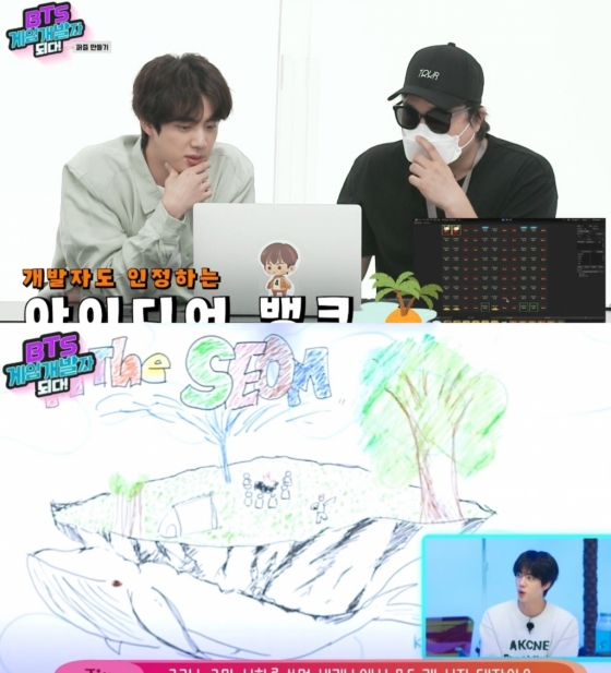 진은 팬들이 좀 더 재미있게 즐길 수 있는 만족도 높은 게임 제작을 위해 자신이 구상한 아이디어를 커다란 화이트보드에 열정적으로 설명하며 개발에 진심을 다했다.