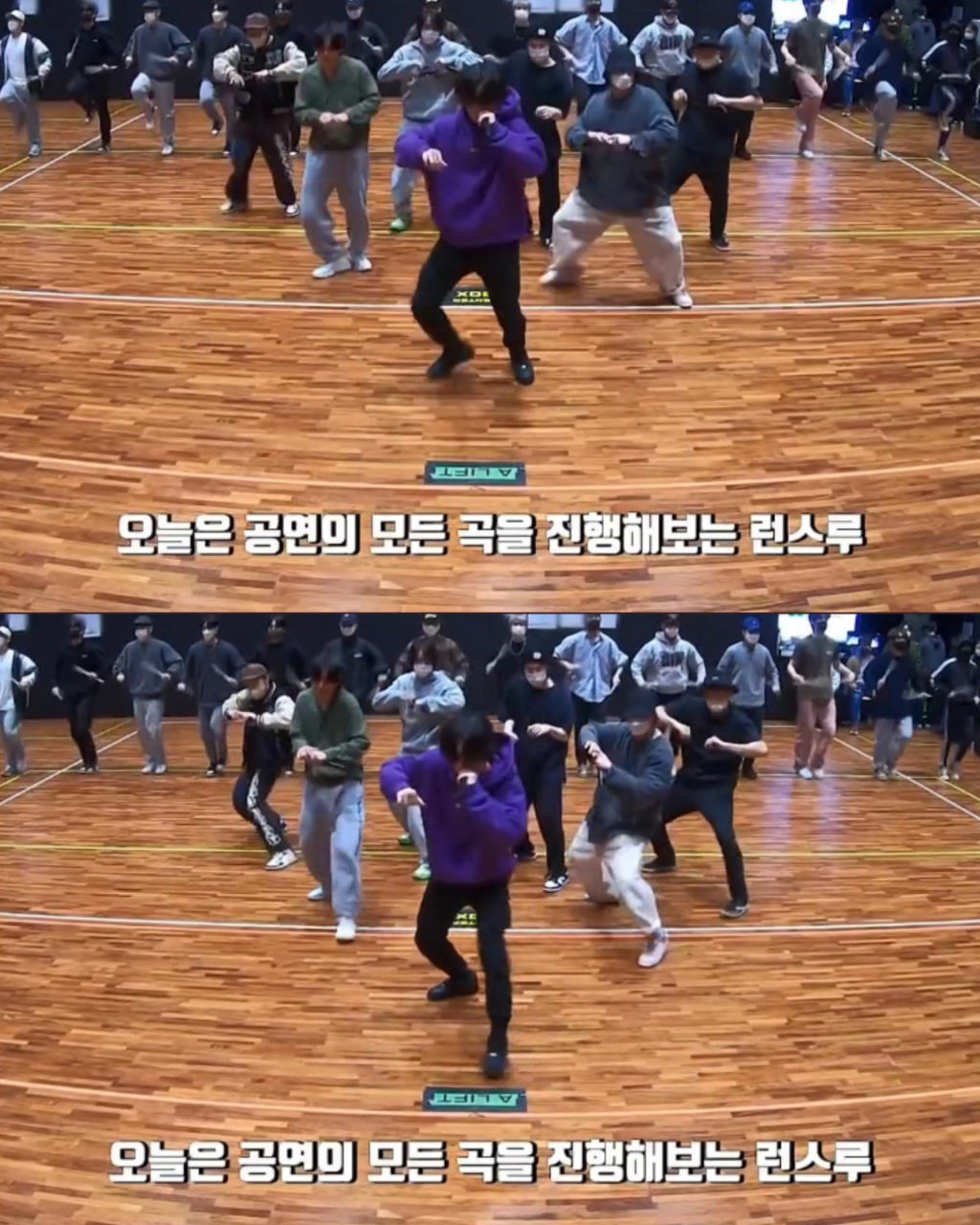 공연의 모든 곡을 점검해 보는 '런스루'에서 지민은 정규 4집 'MAP OF THE SOUL:7'의 타이틀 곡이자 공연 오프닝 곡인 'ON' 리허설때에는 센터에 서서 파워풀한 안무에도 흔들림없는 안정적 보컬을 선보이며 리허설도 현장처럼 완벽하게 소화해내며 최고의 메인 댄서 위엄을 드러냈다.