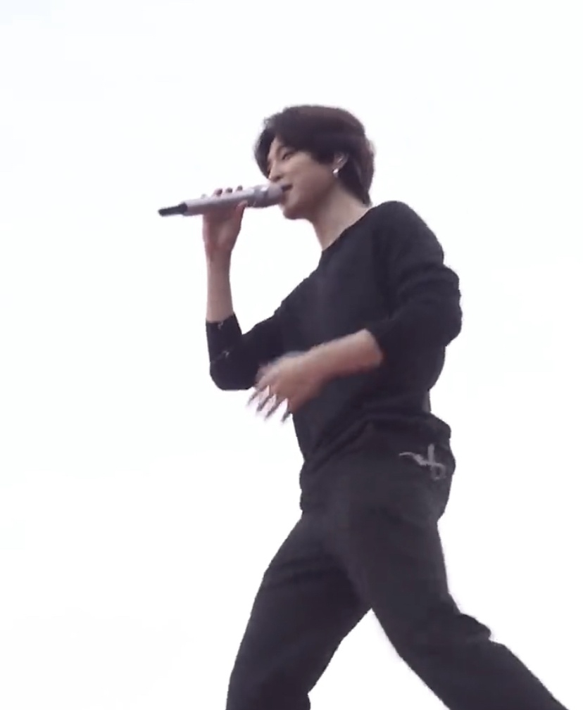 둘째날 이어진 사운드 체크 무대에서 지민은 한층 긴장이 풀린모습으로 편안하게 팬들을 맞이했다.