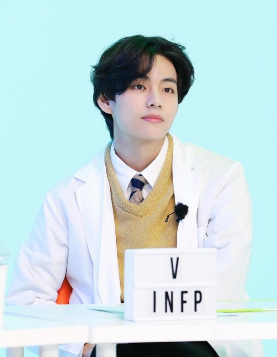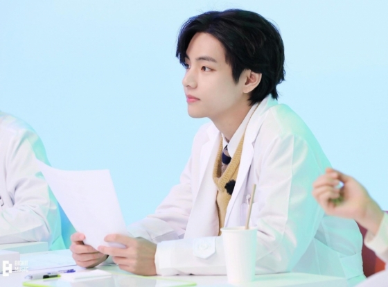 뷔는 이마를 반쯤 가린 흑발의 헤어스타일을 하고 화이트 셔츠에 머스터드색상의 베스트를 매치하고 하얀 가운을 걸쳐 메디컬드라마의 주인공 같은 지적인 분위기를 연출했다.
